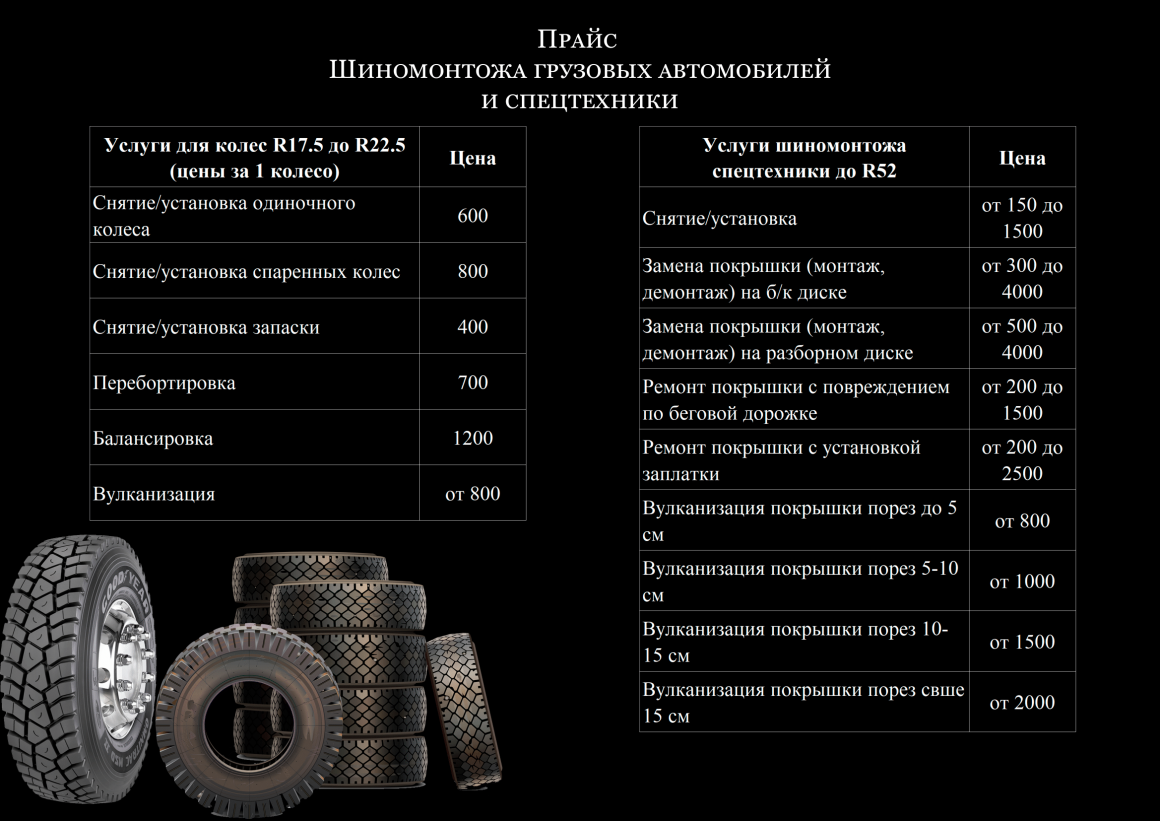 Шиномонтаж легковых, грузовых автомобилей и спецтехники